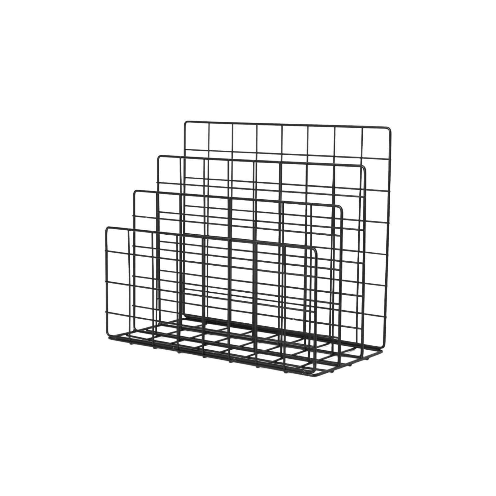 Relaxdays Dokumentorganisatör, tidningsställ i metall, 5 arkiveringsfack, nätutseende, 18,5 x 20,5 x 37,5 cm, svart, stål, 1 artikel