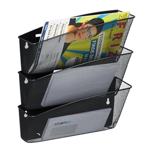 Relaxdays Tidningshållare vägg, uppsättning av 3, tidningsställ, väggfack, HBT 39 x 36 x 12 cm, magasinhållare, metall, svart