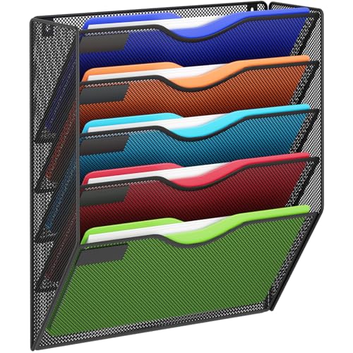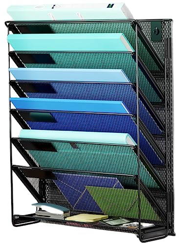 Kuntine.B 7-nivåer hängande filorganiserare vertikal väggfil organiserare vägg filhållare, mesh tidningsställ post dokumentorganiserare för kontor skola hem
