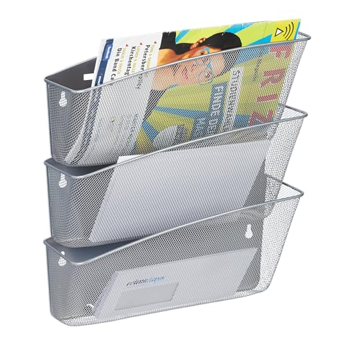 Relaxdays Tidningshållare vägg, uppsättning av 3, tidningsställ, väggfack, HBT 39 x 36 x 12 cm, magasinhållare, metall, silver