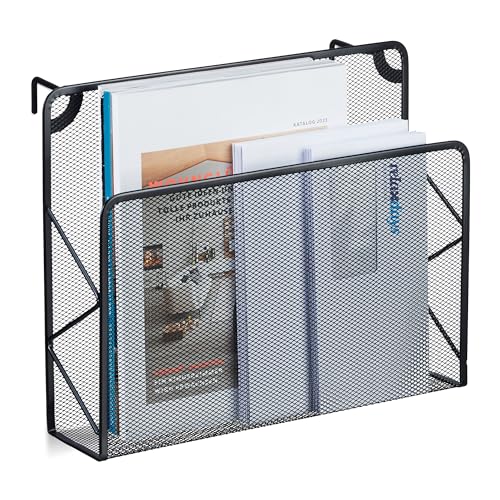 Relaxdays tidningshållare vägg, tidningsställ, väggkorg, HBT 28 x 35,5 x 10 cm, magasinhållare, metall, svart