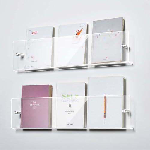 vägg bokhylla, Akryl klara tidningsställ 2 st, väggmonterad tidningshållare stativ for kontor i vardagsrummet, hängande vägg broschyr display stativ med beslag(60cm(23 5/8"))