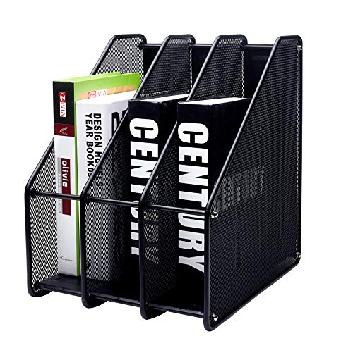 EXERZ Tidskriftshållare trippelställ, nätmetall – 3 fack dokument/anteckningsböcker/mapp/organisatör (svart)