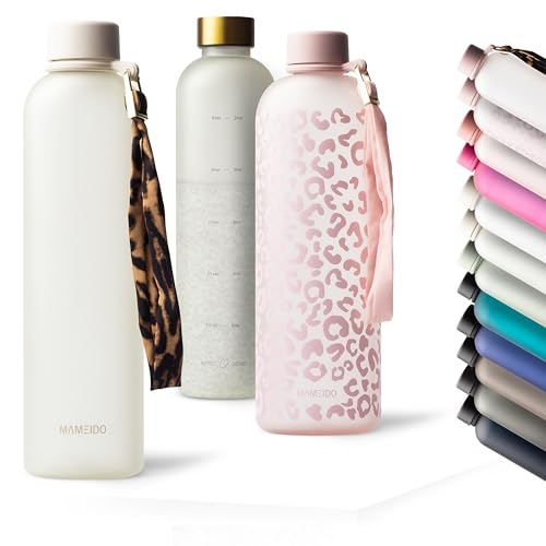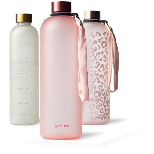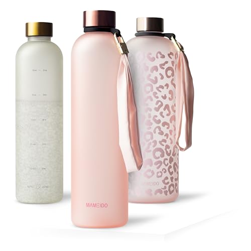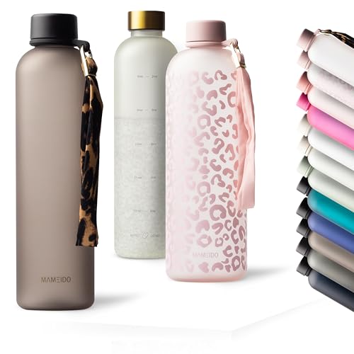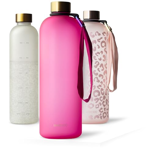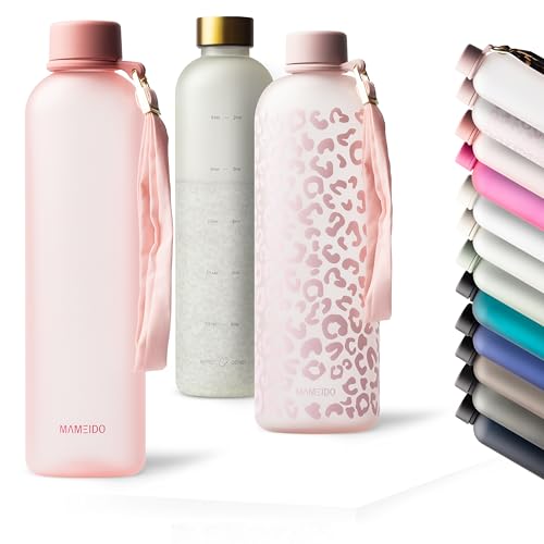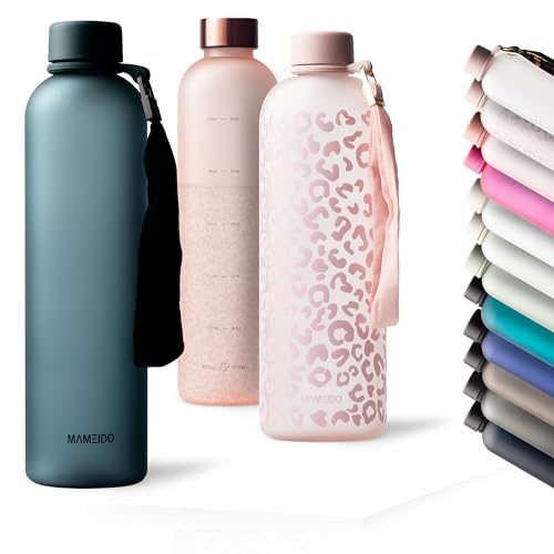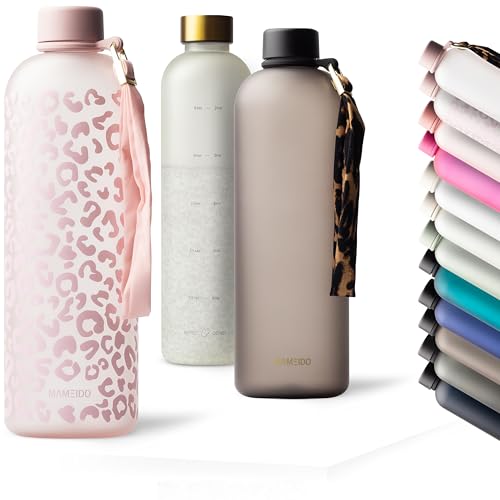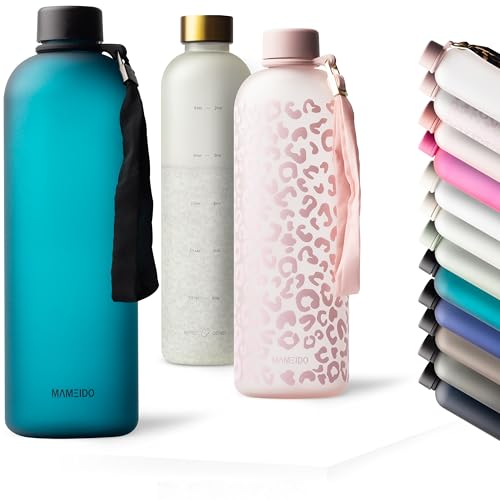 MAMEIDO dricksflaska 1 l, kolsyra lämplig, läckagesäker dricksflaska med tidsmarkör som drickspåminnelse, vattenflaska BPA-fri för sport (Glow Couture)