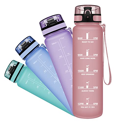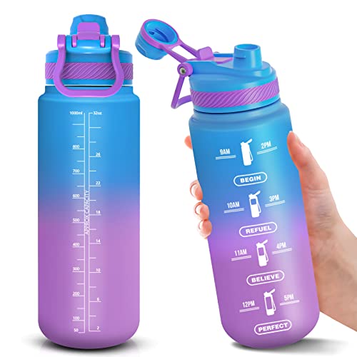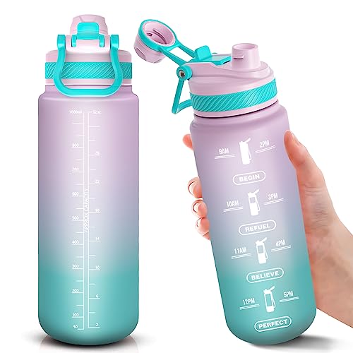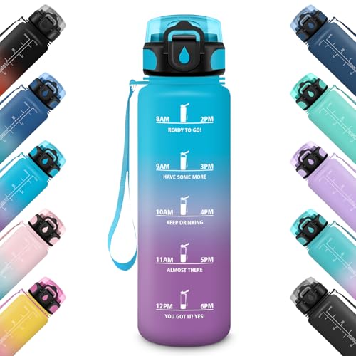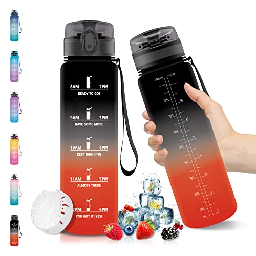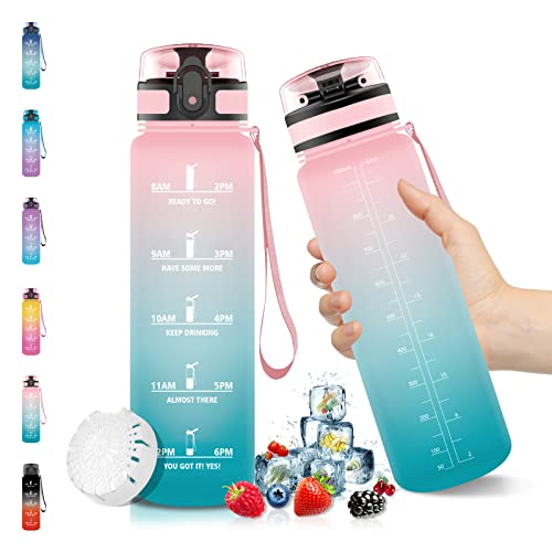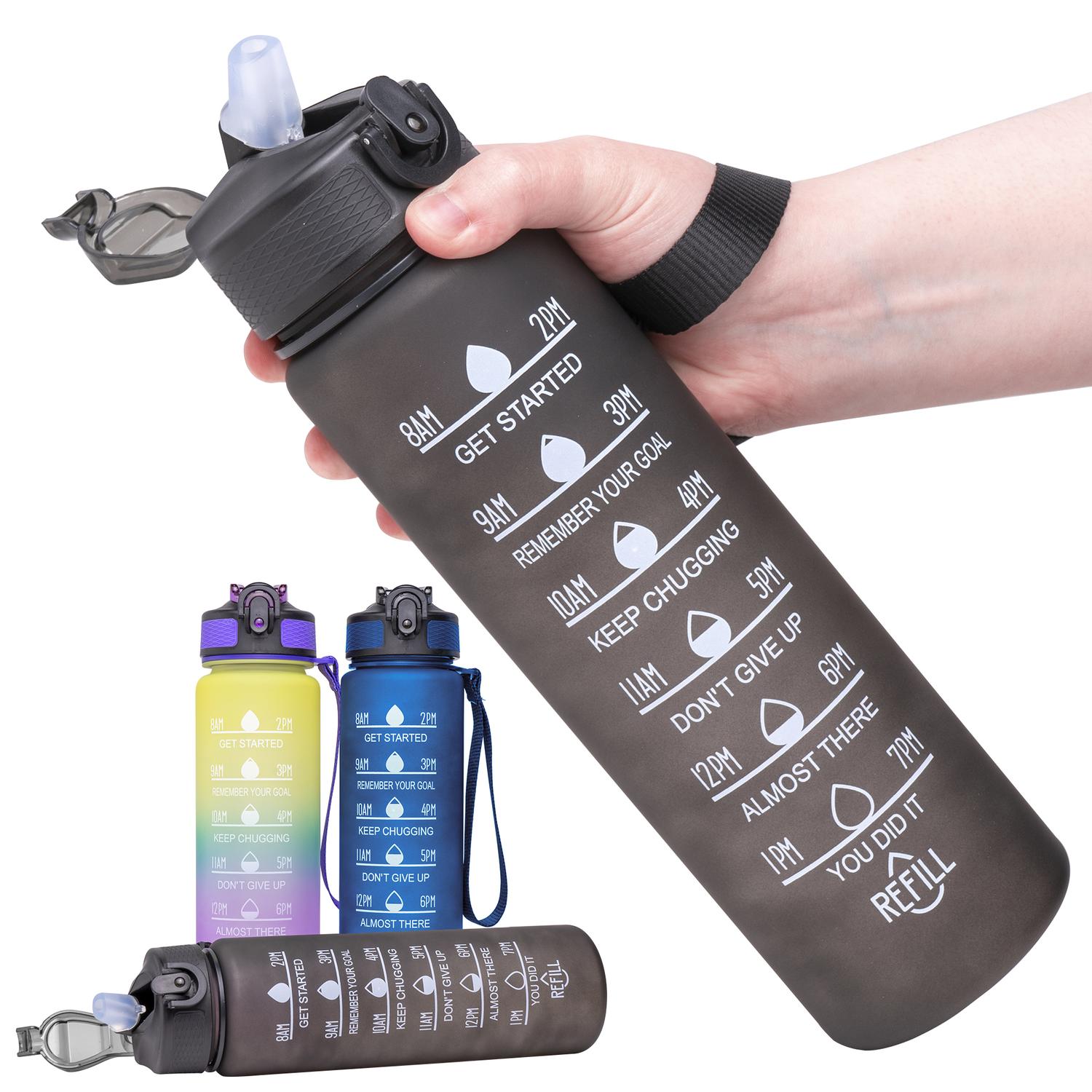 Vattenflaska, Sport Vattenflaska, 1000ml motiverande vattenflaska med tidsmarkör, BPA-fri Tritan Giftfri Plast Läckagesäker Dryckesflaska, för Löpning, Gym, Yoga, Camping