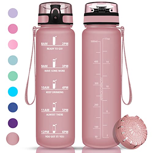 HoneyHolly 500 ml drickflaska, läckagesäker, sportflaska, motiverande flaska, med tidsmarkör, vattenflaska, vattenflaska för skola, camping, yoga, kontor