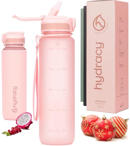 Hydracy vattenflaska med tidsmarkör och sugrör - stor 1 liter BPA-fri och svettfri hylsa - läckagesäker gymflaska med drickstider - perfekt för fitness, sport och utomhusbruk