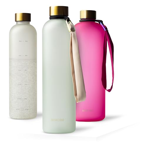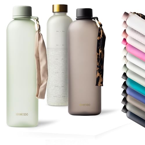 MAMEIDO dricksflaska 1 l, kolsyra lämplig, läckagesäker dricksflaska med tidsmarkör som drickspåminnelse, vattenflaska BPA-fri för sport (Desert Sage)