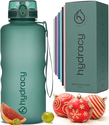 Hydracy vattenflaska med tidsmarkör - Stor 2-liters BPA-fri flaska och svettfri hylsa - Läckagesäker gymflaska med fruktsil och drickstider - Perfekt för fitness, sport och utomhusbruk