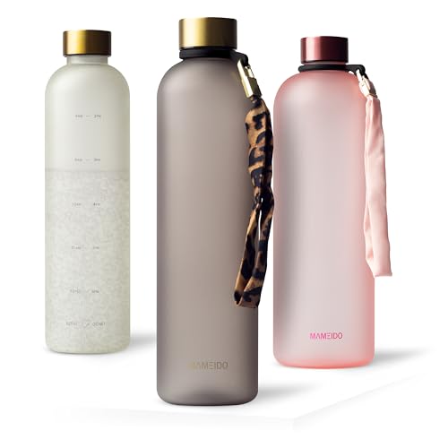 MAMEIDO dricksflaska 1l - kolsyra lämplig, läckagesäker dricksflaska med tidsmarkör som drickspåminnelse, vattenflaska BPA-fri för sport (Ivory Beige, 1000ml)