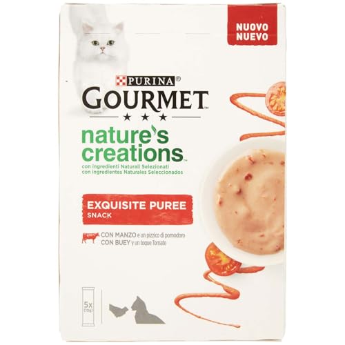 Purina Gourmet Nature's Creations Puree, Snack, Kattpris med oxe och tomat, 5 kuvert 10g