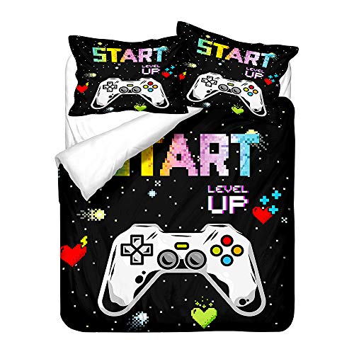 PEIHUODAN Anime Gamer Påslakan Barn Tonåringar Mosaik Blixten Tie Dye Gamepad Sängkläder Set Mikrofiber Påslakan Videospel Örngott (Svart, 150x200 cm,Säng 90 cm)