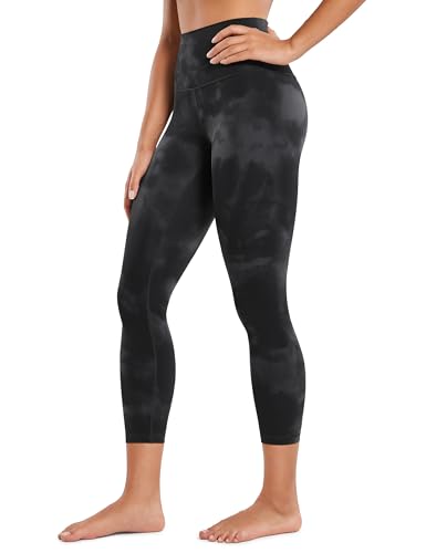 CRZ YOGA Dam Butterluxe Högmidjade Lounge Leggings 19' - Träningsmjuka Capris Yogabyxor Black Tie Dye Flowers M