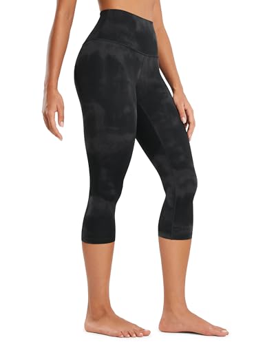 CRZ YOGA Butterleuse Dam Hög midja 3/4 Leggings Capri Blickdicht Sport Yoga Fitness Sommarsport Byxor Black Tie Dye Flowers S