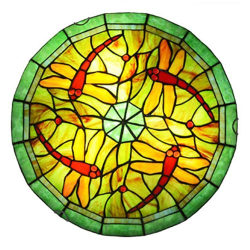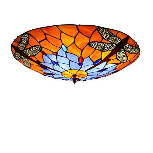 Tiffany stil Dragonfly taklampa, färgat glasskugga taklampa, vintage dekor ljuskronor för sovrum vardagsrum kök hallway,40cm
