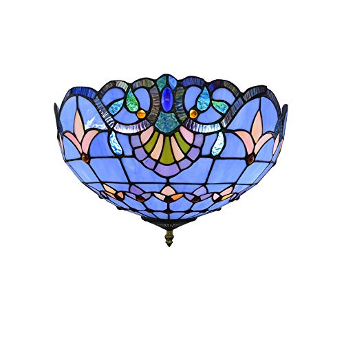 Taklampa i Tiffany-stil, vintage blå målat glas infälld montering taklampa, modern dekoration hängande lampa för vardagsrum sovrum matsal [Energiklass A ++], 40 cm
