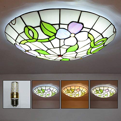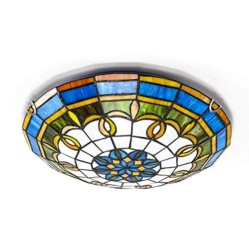 LED Tiffany-stil taklampor, målat glas skärm taklampa, barock dekoration infälld montering takbelysningsarmaturer för vardagsrum sovrum hall, 3 000 K, 40 cm