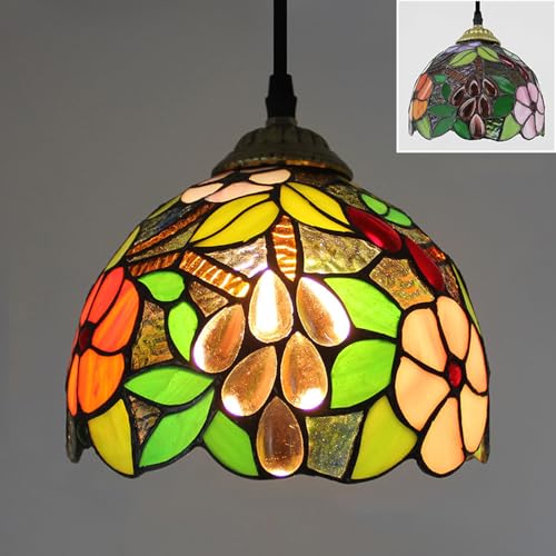 Mengjay Tiffany-stil Hänglampa, Färgglad Glas Taklampa, 20 cm Diameter, Vintage Dekorativ Belysning Lämplig för användning i hallar, sovrum, kök och korridorer. (Style.E)