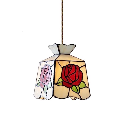 Tiffany Rose Pendellampa Vintage hängande taklampa Målat glas Köksö-belysningsarmatur Medelhavsupphängda lampor för bondgårdskök Loftkontorslampor