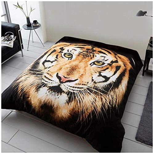 Lyxigt 3D-djur tryckt vildmarktäcke, lättskött mjuk och mysig lätt filt för soffa, tiger, ansikte brun, 150 x 200