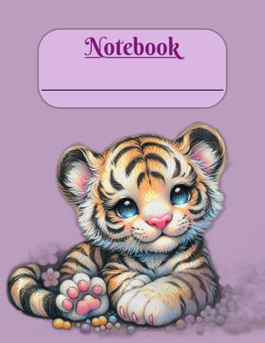 Tiger Cub Notebook with Pastel Purple Background- 8.5x11 inch | 120 Wide Ruled Pages | Aesthetic Stationery for all: Cute Baby Tiger Themed Notebook | ... or Gift Ideas | Kawaii animal Writing book