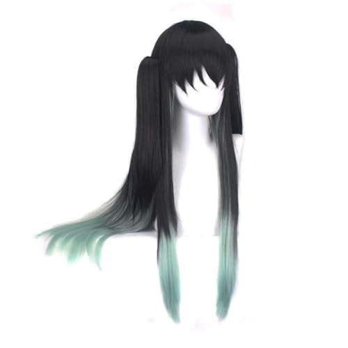 Anime Tokitou Muichirou Cosplay peruk, gradient dubbel tiger mun med hästsvans långt hår halloween kostym party rollspel (A)