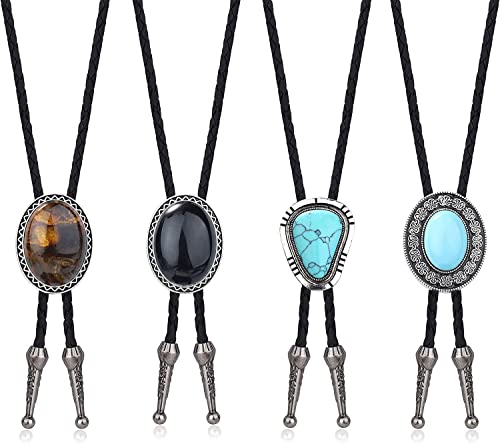 Milacolato 4 st bolo ties slips för män western cowboy naturlig tiger öga läder slips boloties kostym tillbehör för män, Large, Läder