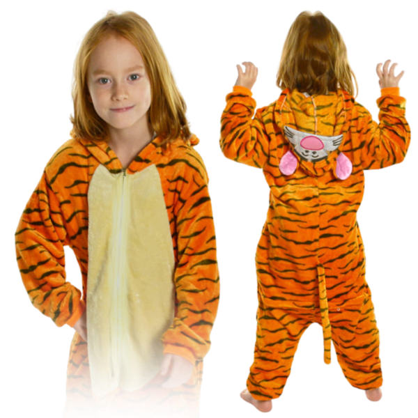 Wizland Tiger Onesie kostym set för pojkar, tiger med svans, unisex djurdräkt för pojkar och flickor storlek M 6–8 år