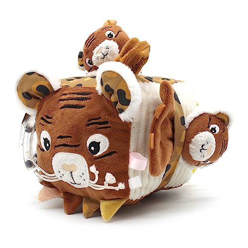 LES DEGLINGOS Tygaktivitetskub Speculos the Tiger, leksak för barn, sonisk och taktil babyleksak, utvecklingsleksak, födelsegåva, 12 cm (ockra)