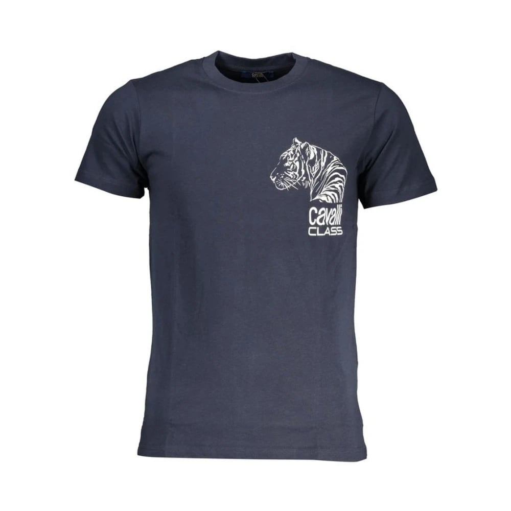 Cavalli Class, Toppar , Herr, XL, Bomull, Blå Tiger Logo Crew Neck T-shirt