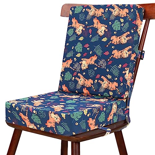 Sittupphöjning stol barn för bordet – barn 2 sitthöjningsstolar med olika höjder, avtagbar, lätt att rengöra, halkfri undersida och justerbara säkerhetsremmar (tiger)