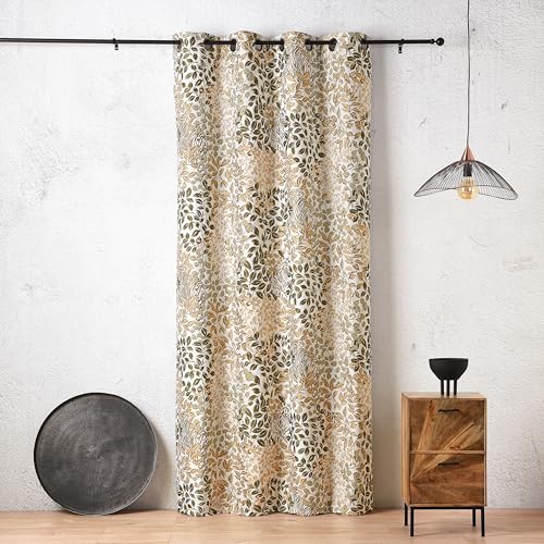 Linder Jacquardgardin med tigermönster - vävd och färgad i Frankrike - guldgul färg salvia grön - växtstil - gevärskanna öljetter - 140 x 240 cm - 98% polyester 2% polyamid - tigerkollektion
