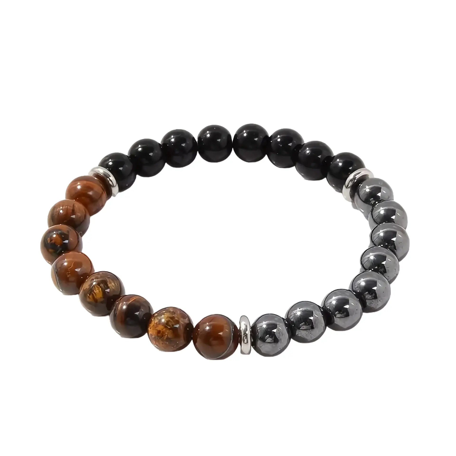 Armband rudraksha / tigeröga / lavasten 8 cm