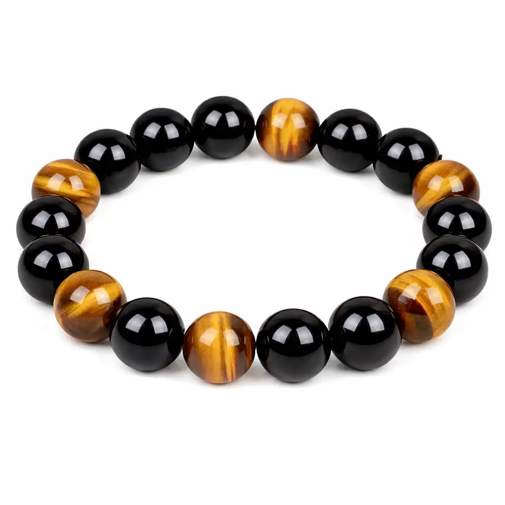 Pärlarmband obsidian och tigeröga