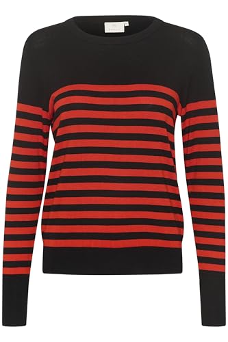 KAFFE Dam smal passform Crew Neck randig långärmad tight stickad tröja, Svart/röd rand, M