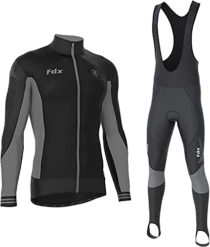 FDX Thermodream vintercykeldräkt för män – italiensk termisk roubaix vindtät klädset – långärmad tröja med 3D vadderad haklapp tight för cykling, cykling, utomhussport (grå)