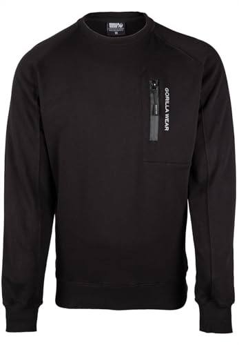 Gorilla Wear Newark tröja – svart kroppsbyggnad fitness sport vardag långärmad långa ärmar bekväm dragkedja med ficka tight passform bomull polyester pullover praktisk träning