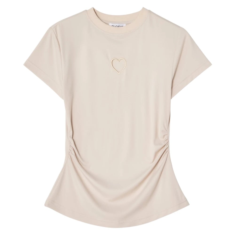 Cloeys, Toppar , Dam, XS, Tight åtsittande t-shirt beige