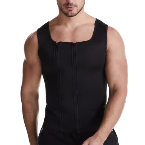 Men Tank Top Sweat Shaper Tummy Slimming Corset Zipper Vest Shapewear Tight Undershirt Control Girdle(Color:Black,Size:S)