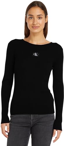 Calvin Klein Jeans dam vävd etikett tight tröja pullover tröja, svart (Ck Black), XXL, Ck svart, XXL