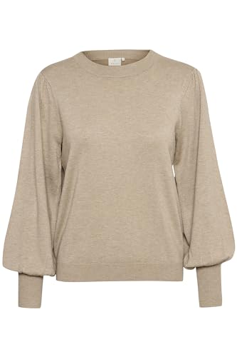 Kaffe Kvinnors tröja Crew Neck Regular Fit lång biskopärm tight stickad dam, Chinchilla Melange, L