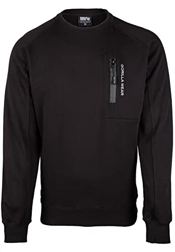 Gorilla Wear Newark tröja – svart kroppsbyggnad fitness sport vardag långärmad långa ärmar bekväm dragkedja med ficka tight passform bomull polyester pullover praktisk träning