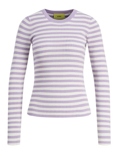JJXX Jxjodi tight randig crew neck stickad tröja, Lilac Breeze/ränder:/Molndansare, XL
