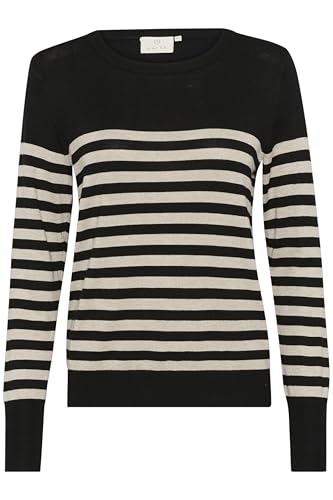 KAFFE Dam smal passform Crew Neck randig långärmad tight stickad tröja, Svart/Turtledove Stripe, XL