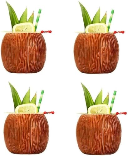 Set med 4 tiki-mugg, kokosnöt, cocktailglas, TIKIS, keramisk kopp, kopp, inspiration, kokosnöt, exotiska och tropiska drycker, hawaiiansk cocktail