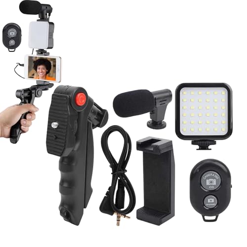 PARENCE.- Komplett vloggningskit för smartphones - Justerbart stativ, siktmikrofon, LED-belysning, Bluetooth-fjärrkontroll, universellt stativ - videoinspelning, YouTube, TikTok, streaming