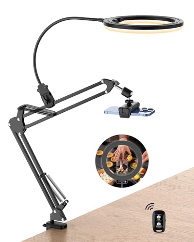 25 cm (10 tum) ringljus för skrivbord med stativ och telefonhållare, overhead stativ ringljus, videokonferen med justerbart skrivbordsarmstativ för YouTube, TikTok, arbete för telefon, webbkamera