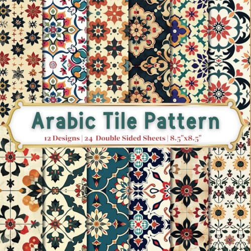 Arabic Tile Pattern Scrapbook Paper Craft Pad: 12 Middle Eastern Floral Design, 34 Double-Side Sheets Printed on 8.5"x8.5" Sized Paper With Premium ... Junk Journal, DIY, Cardstock, Collage Etc.