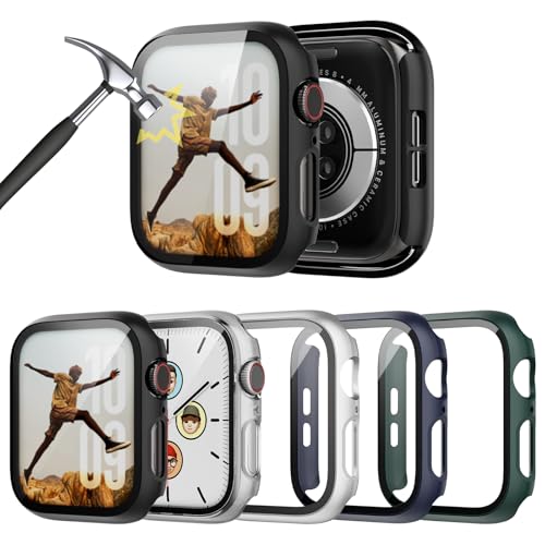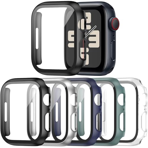 Haojavo 5-pack fodral för Apple Watch Series 6 5 4 SE 44 mm med skärmskydd i härdat glas, helt hårt ultratunt repbeständigt stötskydd för iWatch 44 mm tillbehör (5 färger)