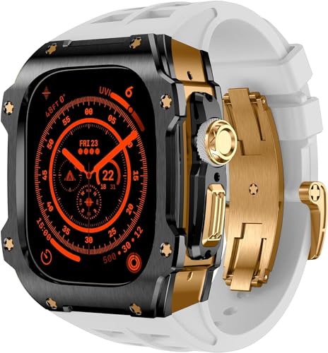 FACDEM Klockfodral i rostfritt stål gummiband, för Apple Watch-serien Ultra 2 49 mm ersättning, metallinfattning klockarmband lås mod kit, för iWatch serie 49 mm tillbehör, For ultra 2, Agat